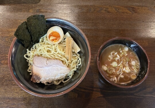 魚介の風味豊かな醤油だれに、鶏ガラスープのコクを重ねたつけ汁が決め手