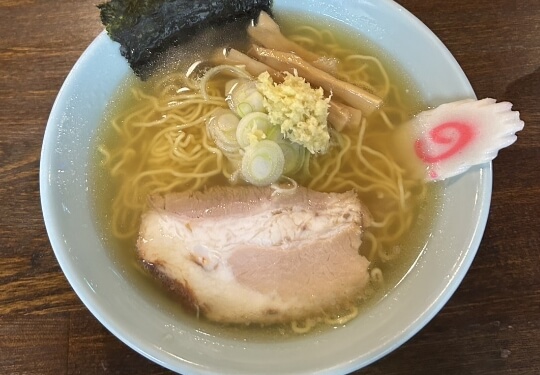 澄んだ塩スープにしょうがの香味がやさしく広がる一杯。後味すっきり、体に染み渡る味わい。